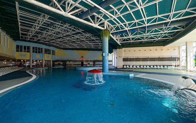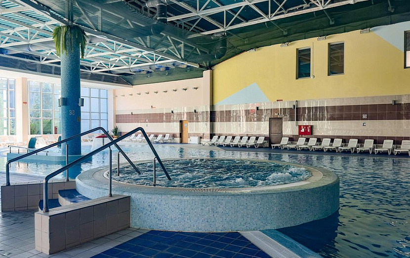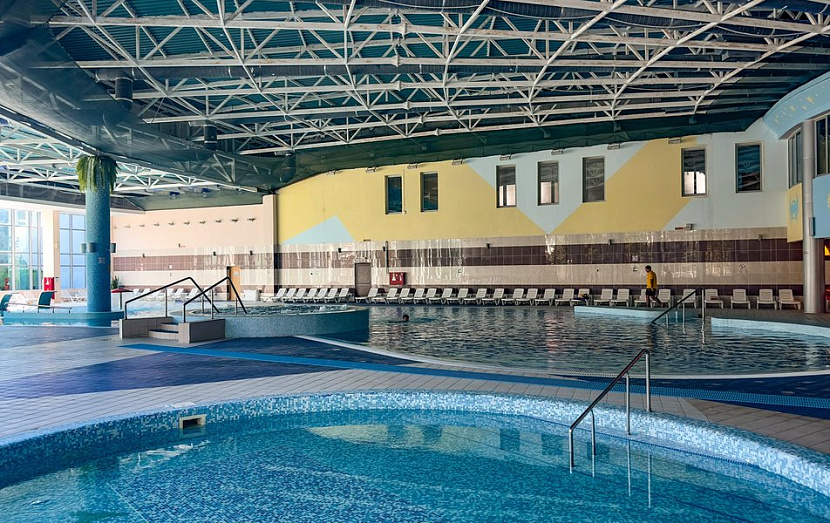 На территории комплекса расположен крытый бассейн глубиной 1м 60 см с пресной водой и детским отделением, открытый бассейн с пресной водой и горками, работающий с июня по сентябрь.